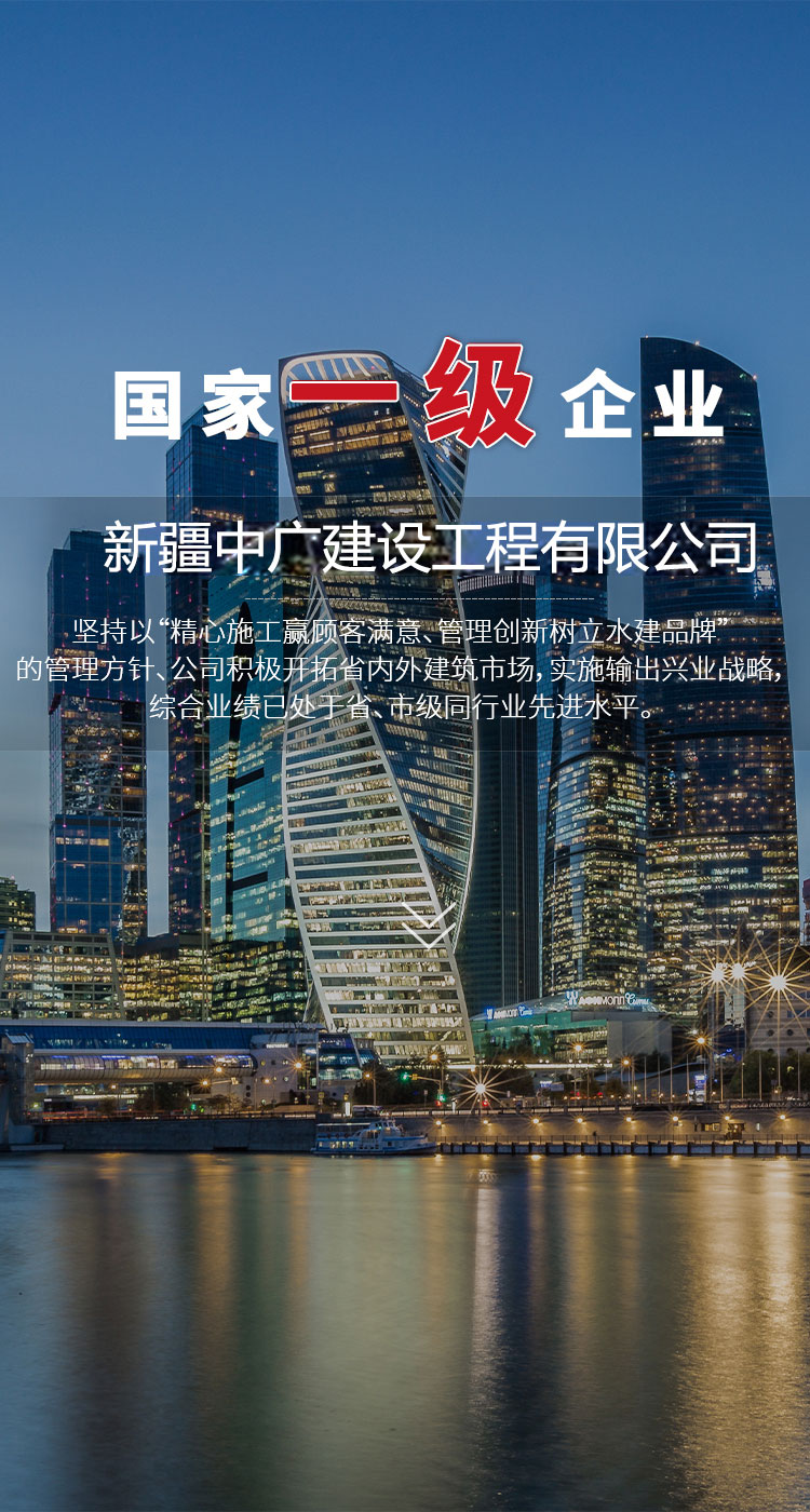 新疆中广建设工程有限公司(原图木舒克市泰吉建设工程有限公司),成立于2012年8月2日,为了进一步发展壮大农三师图木舒克市建筑业实力,完善师市建筑施工企业结构,经过师建设局的批复,注册资金6000万元整,组建成有建筑工程施工总承包贰级,市政工程总承包贰级,水利水电工程施工总承包叁级,港口与航道工程、泵站、涵洞、隧道,公路工程施工总承包贰级的施工企业。 公司创办初始,秉承“质优高效,守约重誉追求卓越,永续经营”的经营理念,施工产值增长率连续保持增长势头,不论生产经营还是质量、安全都严格把关,给用户奉献精品。我公司本着一切为用户服务的宗旨,自觉做到重合同,守信用,把企业效益和社会效益结合起来,并使之逐年提高,并荣获第三师图木舒克市优质程“前海杯”奖,兵团“文明工地”奖,成绩斐然。公司制定和完善了一系列规章制度,有力地保证了工程建设的顺利进行。公司成立后,不断发展壮大,培养大批优秀技术人员,其中具有中、高级职称的人员为48人,二级注册建筑师30人,质检员、安全员、预算员、资料员共计33人,特种工种人员42人,机械工63人,技术人员32人,形成合理的员工结构。公司在发展过程中,以市场为主导,不断扩大市场范围,中标率不断提高,公司注重技术的改进和设备的更新换代,近年来淘汰了一批旧有的生产机械,引进先进的生产设备,实现了生产的现代化,振兴企业是企业的发展目标,不骄不躁、严谨踏实是公司的一贯工作作风,公司成立至今,严格工程管理,追求精益求精,工程合格率达100%,合同履行率达100%,在激烈的市场竞争中以科学的管理水平,更加务实和精神树立了良好的企业形象,为企业的进一步发展奠定了基础,经营产值逐年增高,为企业发展壮大创造了良好的发展空间。